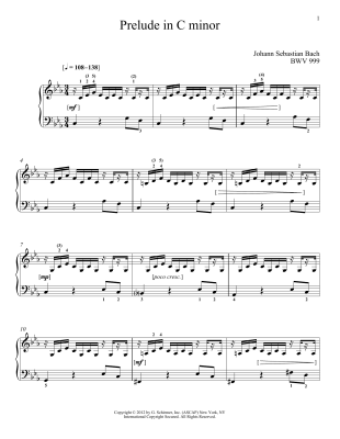 Prelude In C Minor, BMV 999 - Noten für Klavier Johann Sebastian Bach