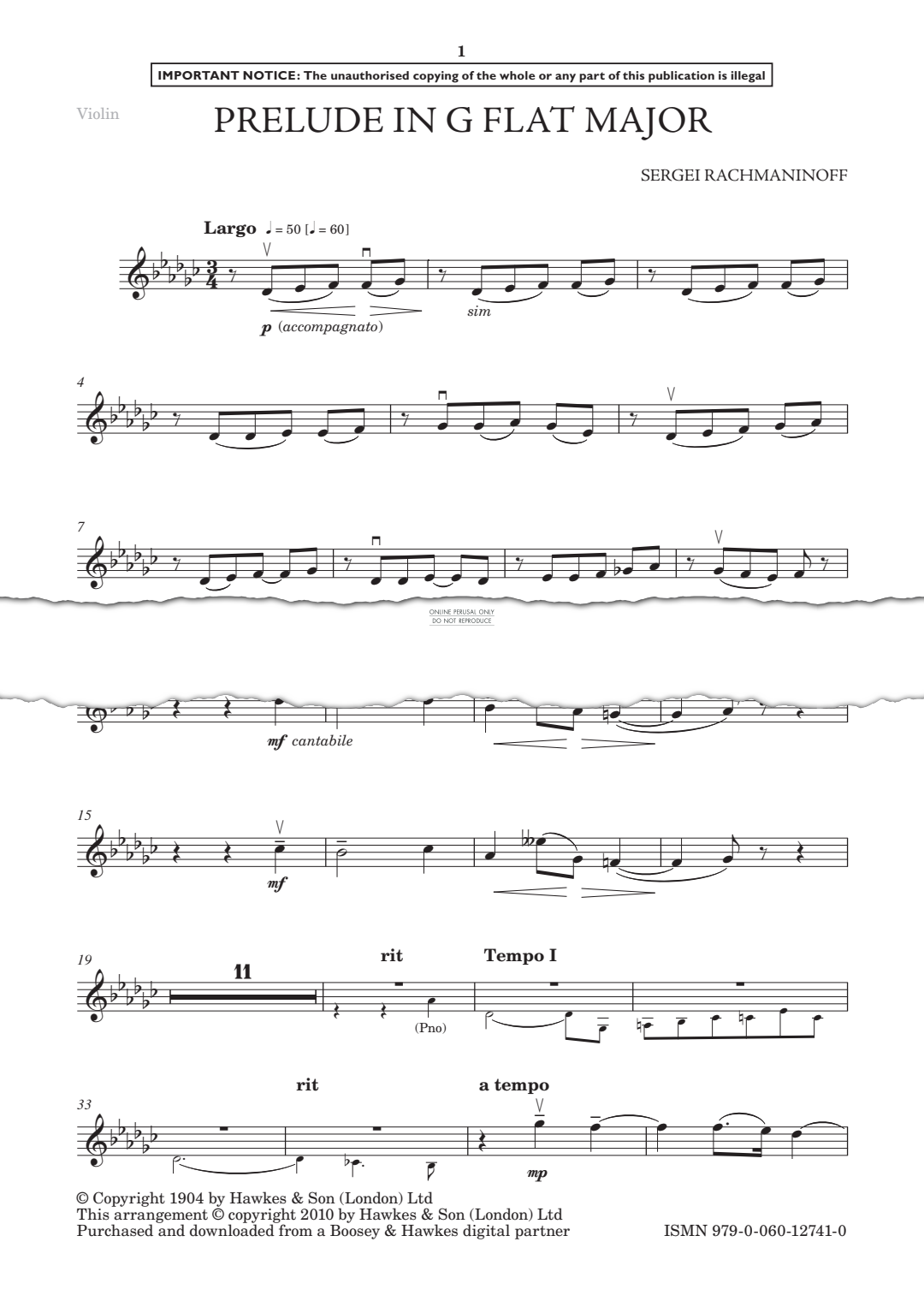 Prelude in G Flat Major - Noten für Klavier, Violine Sergei Rachmaninoff