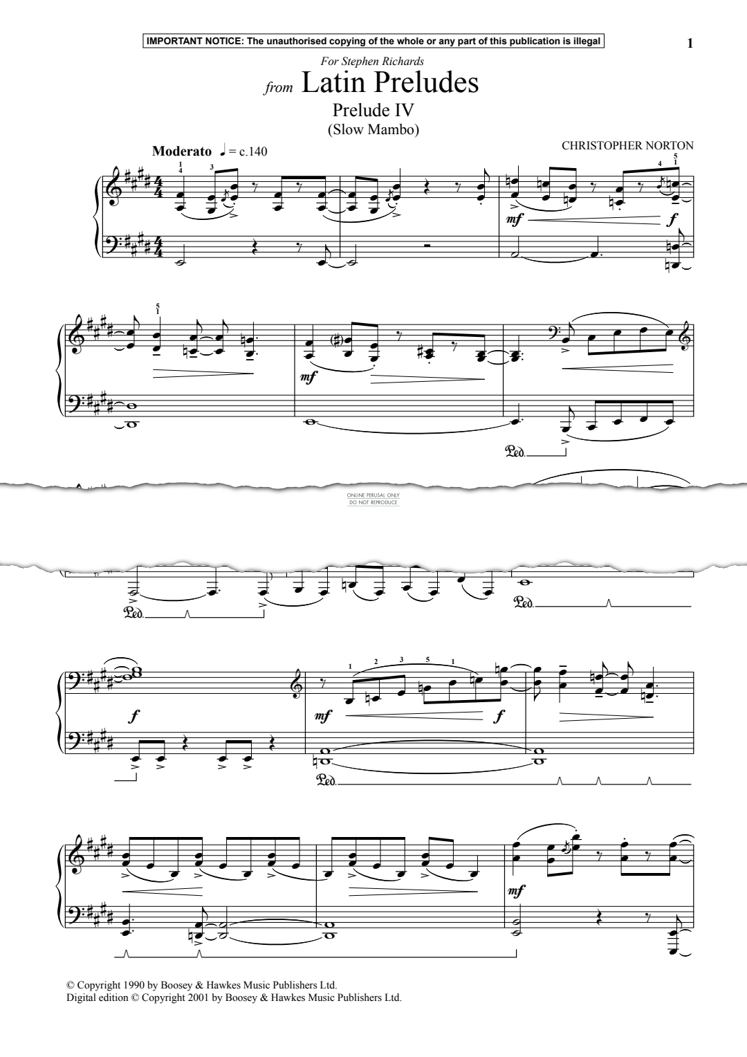 Prelude IV (Slow Mambo) from Latin Preludes - Noten für Klavier Christopher Norton