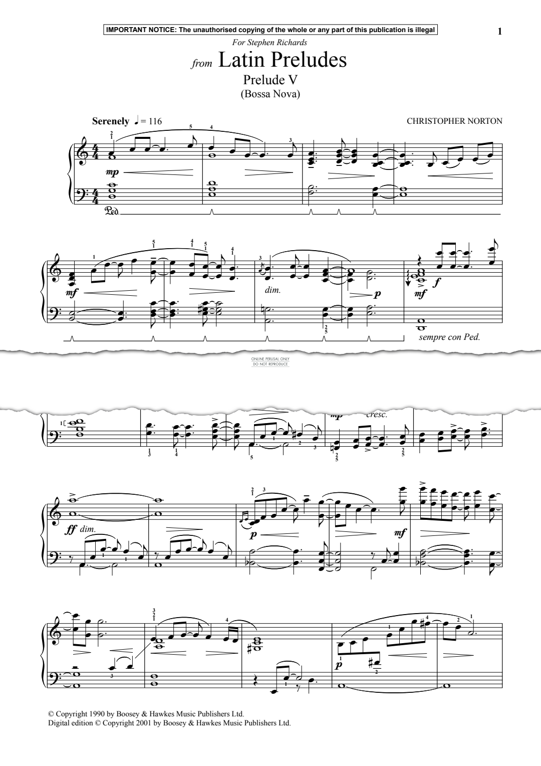 Prelude V (Bossa Nova) from Latin Preludes - Noten für Klavier Christopher Norton