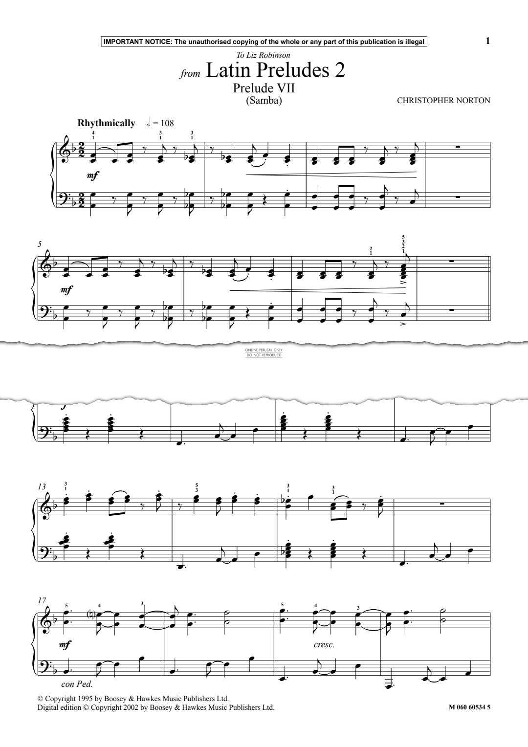 Prelude VII (Samba) from Latin Preludes - Noten für Klavier Christopher Norton