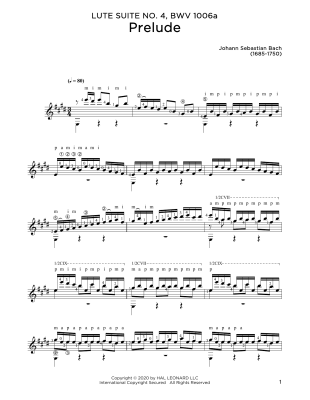Prelude - Noten für Gitarre Johann Sebastian Bach