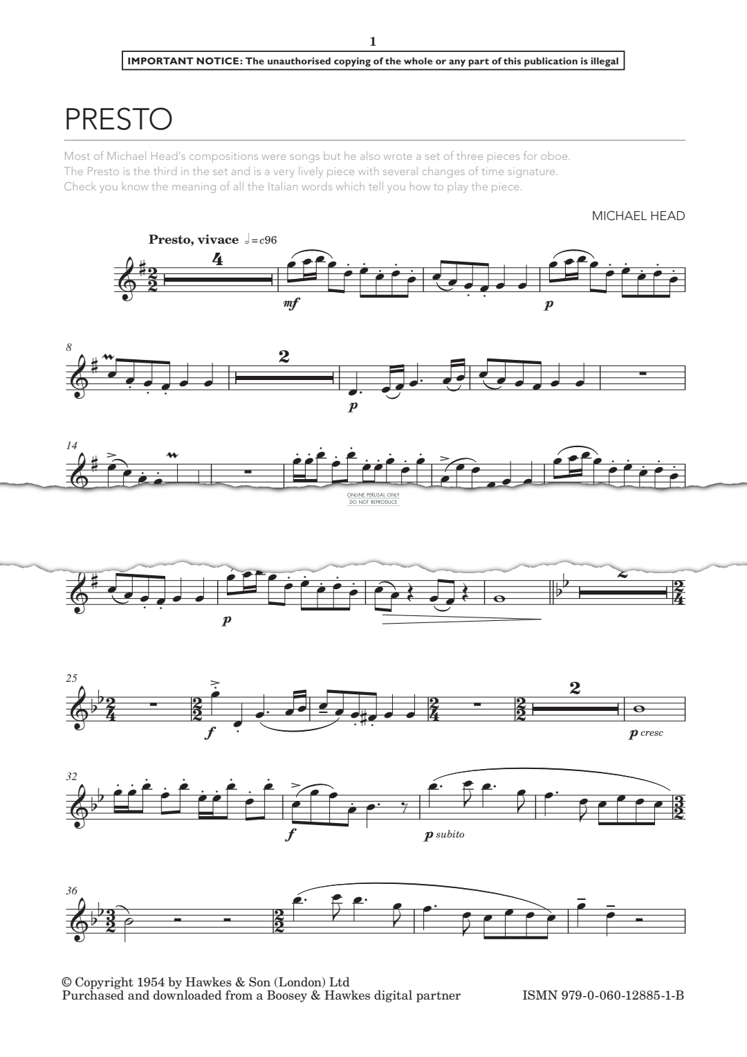 Presto - Noten für Klavier, Oboe Michael Head