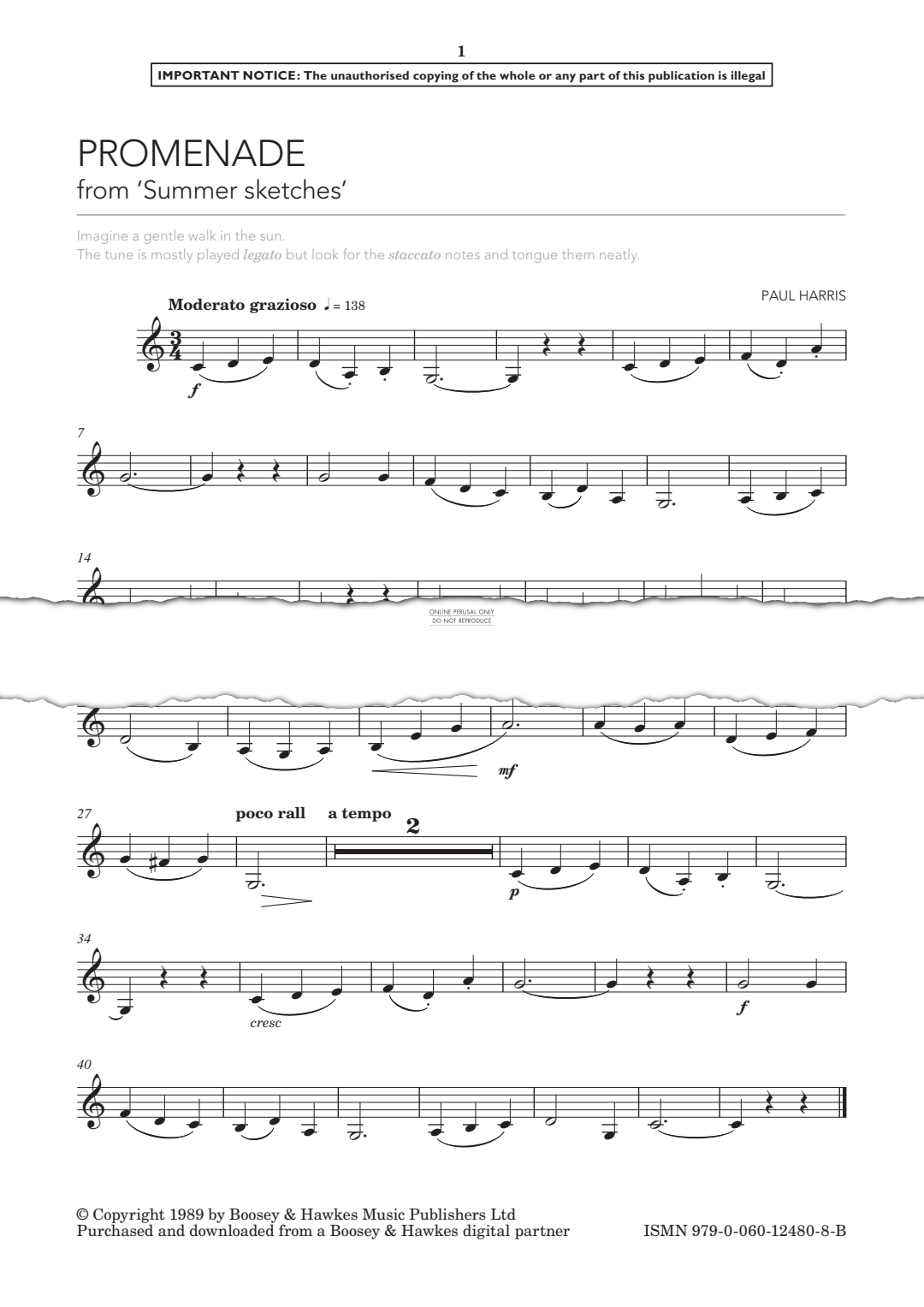 Promenade (from 'Summer Sketches') - Noten für Klarinette, Klavier Paul Harris