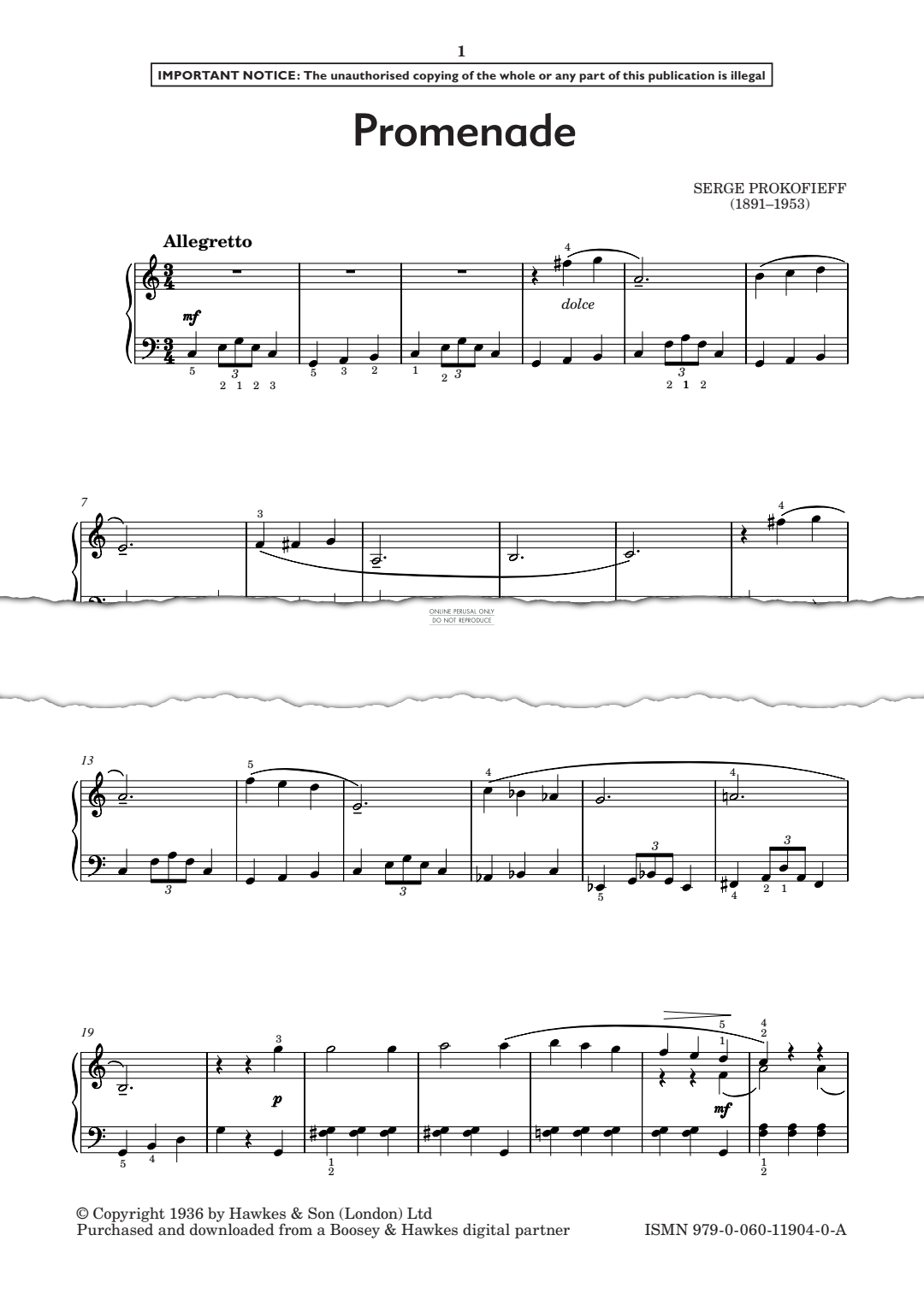 Promenade - Noten für Klavier Sergei Prokofiev