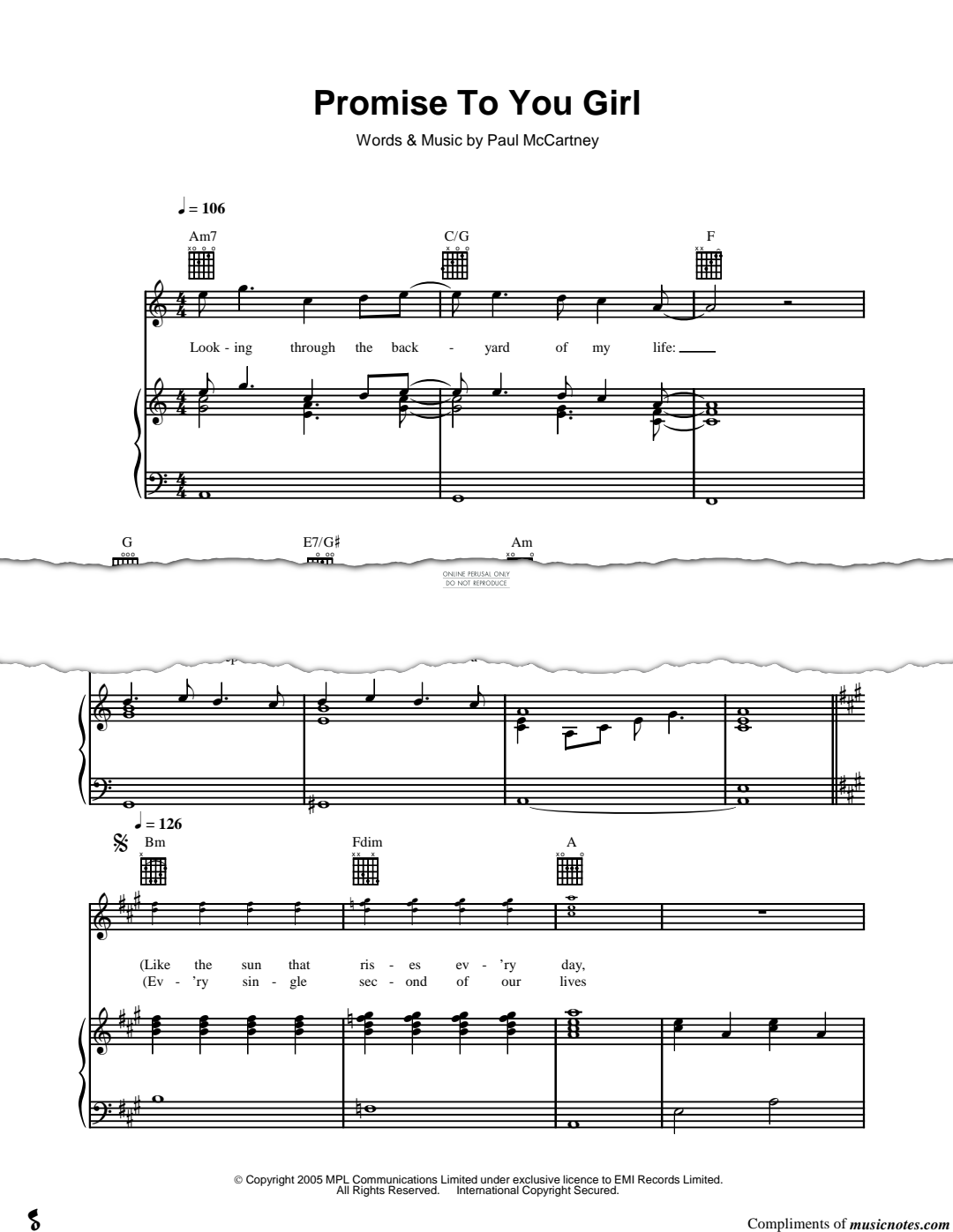 Promise To You Girl - Noten für Chor, Gitarre, Klavier Paul McCartney