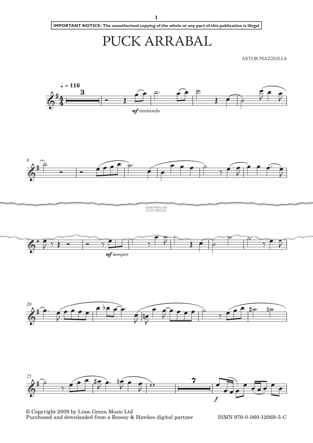 Puck Arrabal - Noten für Flöte, Klavier Astor Piazzolla