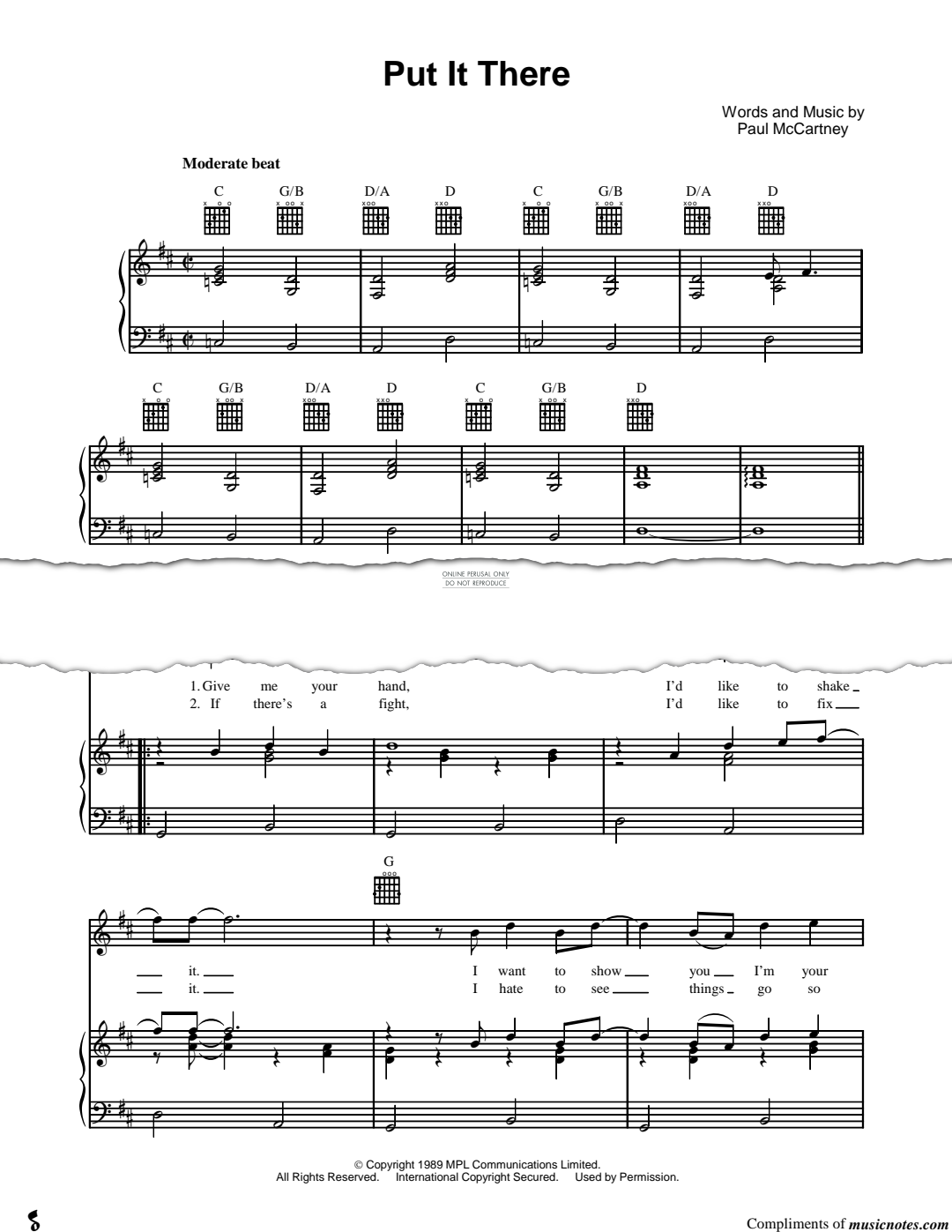 Put It There - Noten für Gesang, Gitarre, Klavier Paul McCartney