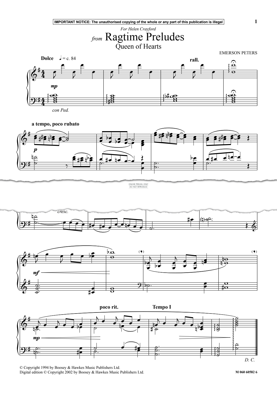Queen Of Hearts from Ragtime Preludes - Noten für Klavier Emerson Peters