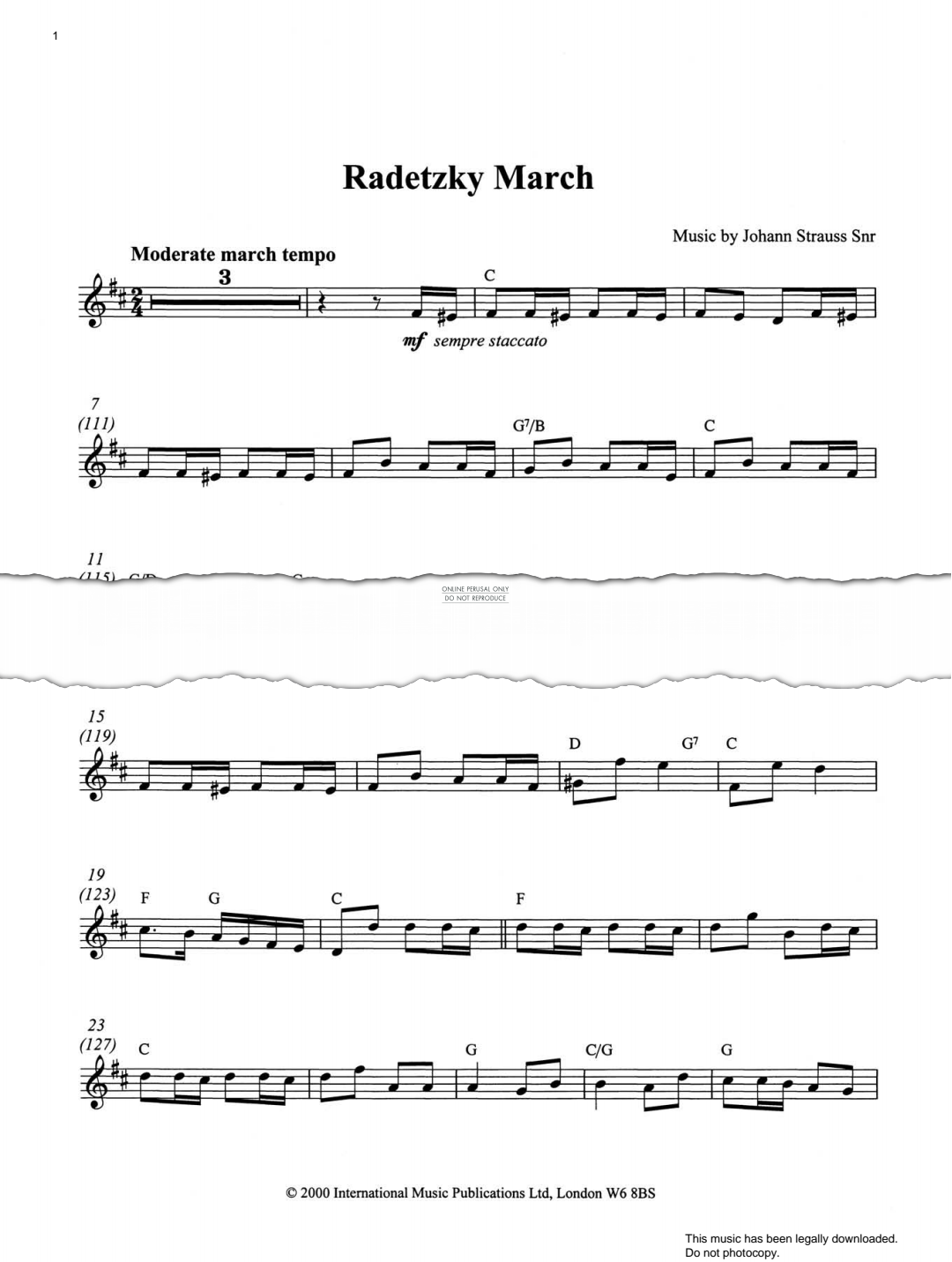 Radetsky March - Noten für Trompete Johann Strauss Snr