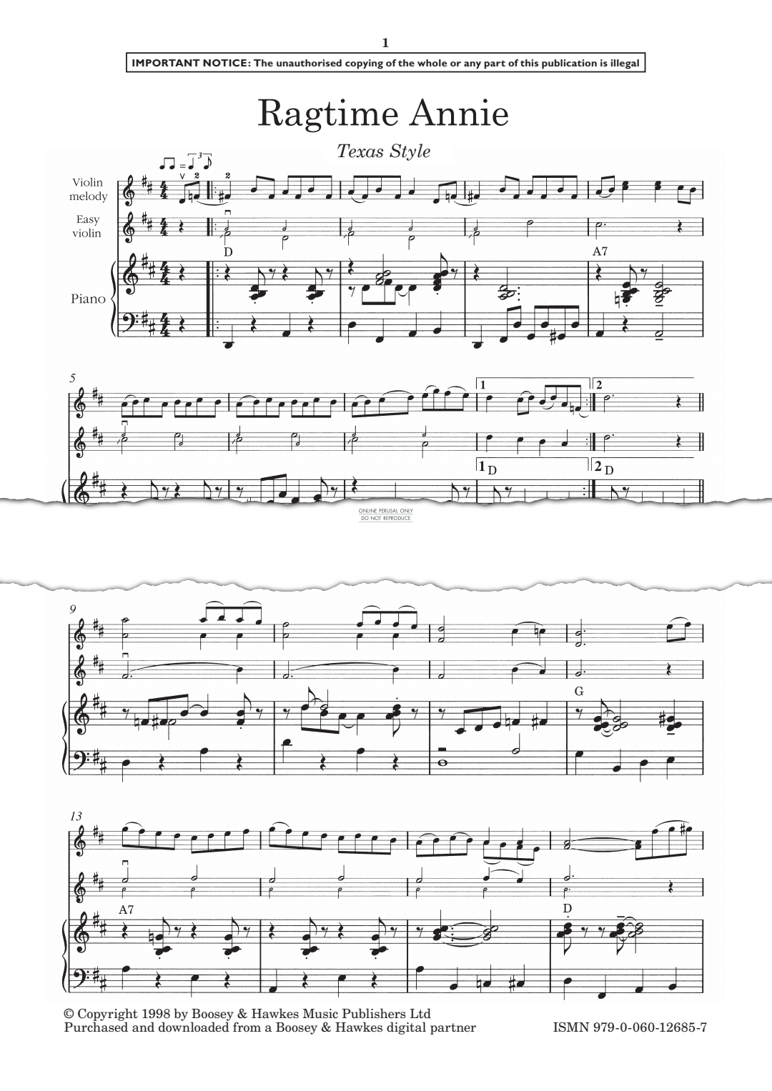 Ragtime Annie - Noten für Klavier, Violine Edward Huws Jones