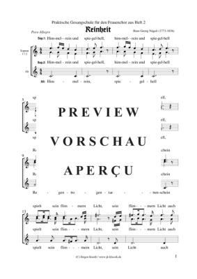 Reinheit - Noten für Frauenchor SSA Hans Georg Nägeli
