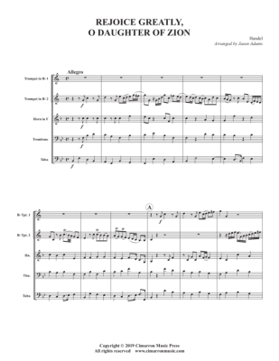 Rejoice Greatly, Daughter of Zion - Noten für Blechbläser Quintett Georg Friedrich Händel