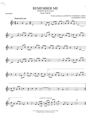 Remember Me (Ernesto de la Cruz) (from Coco) - Noten für Trompete Kristen Anderson-Lopez & Robert Lopez