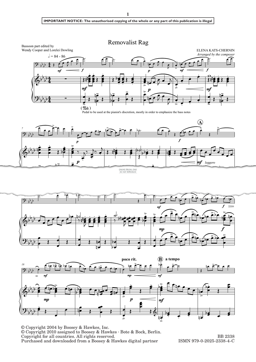 Removalist Rag (from Four Bassoon Rags) - Noten für Fagott, Klavier Elena Kats-Chernin