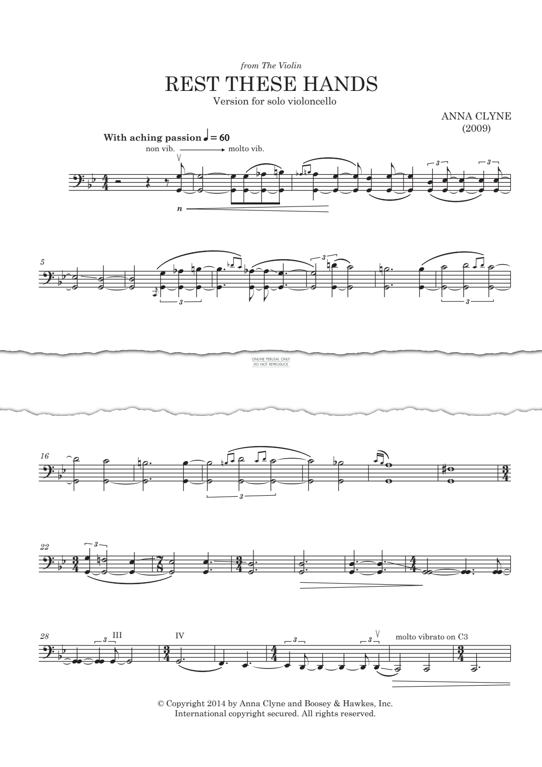 Rest These Hands - Noten für Violoncello Anna Clyne