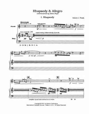Rhapsody and Allegro - Noten für Pikkoloflöte und Harfe Robert Frank