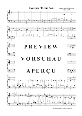 Ricercare / C-Dur No.2 - Noten für Klavier/Cembalo/Orgel Solo Johann Jacob Froberger