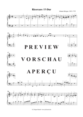 Ricercare / F-Dur - Noten für Klavier/Cembalo/Orgel Solo Johann Krieger