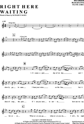 Right Here Waiting - Noten für Blockflöte Richard Marx