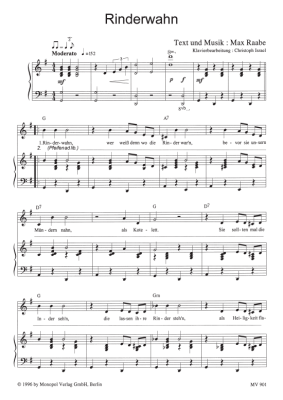Rinderwahn - Noten für Klavier und Gesang Max Raabe & das Palast Orchester