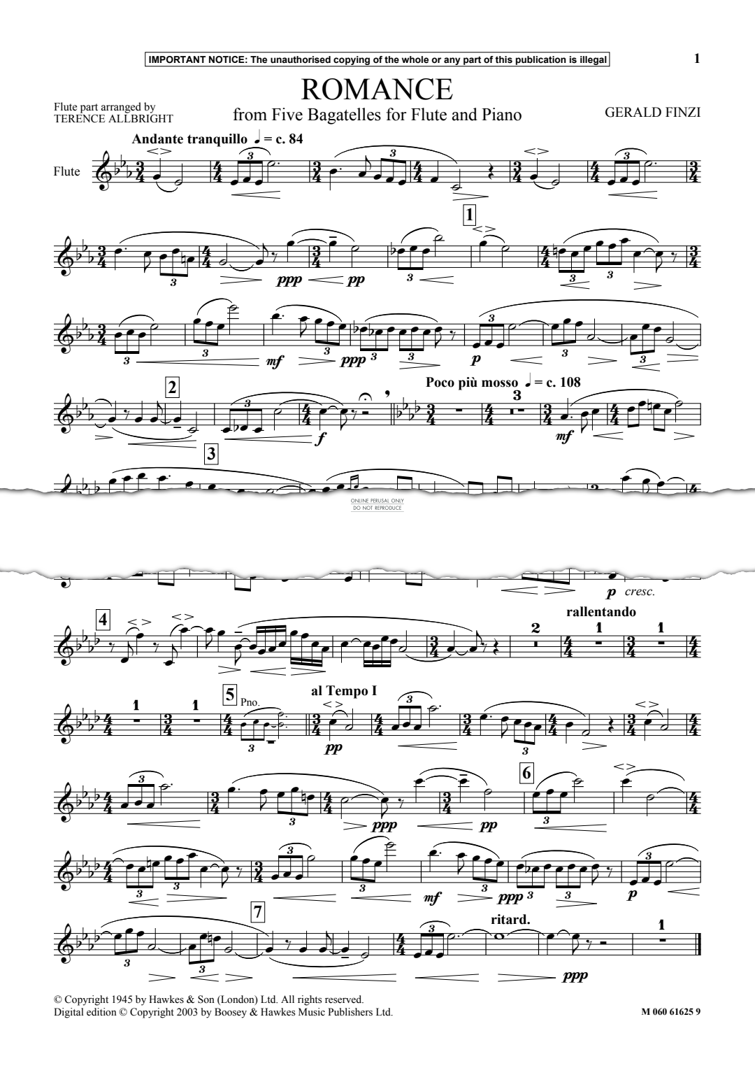 Romance (from 'Five Bagatelles') - Noten für Flöte, Klavier Gerald Finzi