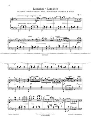 Romance from Piano Concerto in A minor, Op. 7/2 - Noten für Klavier Clara Schumann