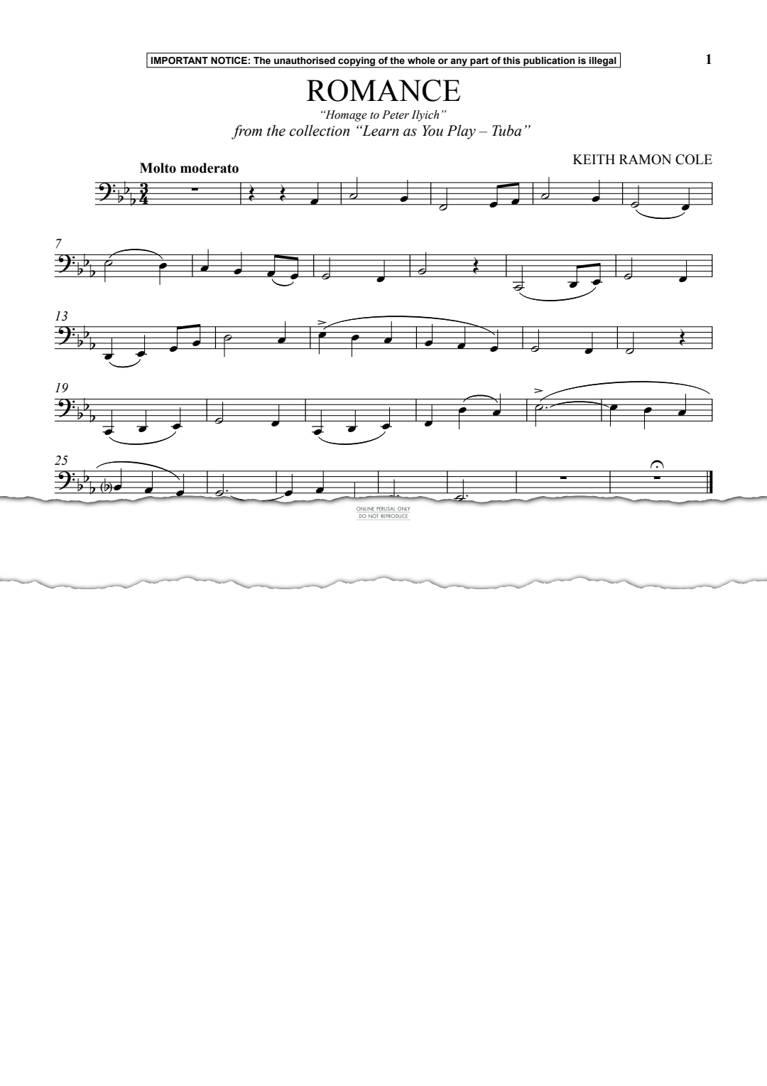 Romance - Homage to Peter Ilyich (from the collection Learn As You Play Tuba) - Noten für Klavier, Tuba Keith Ramon Cole