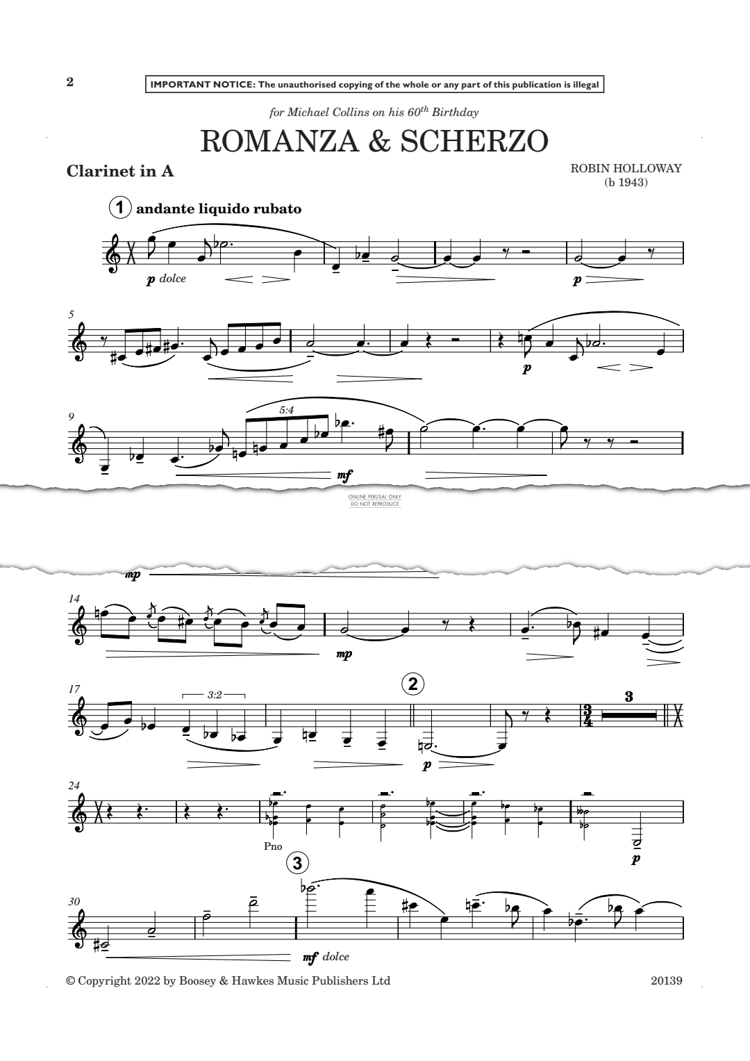 Romanza & Scherzo - Noten für Klarinette Robin Holloway
