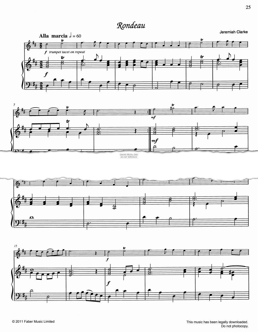 Rondeau - Noten für Klavier, Trompete Jeremiah Clarke
