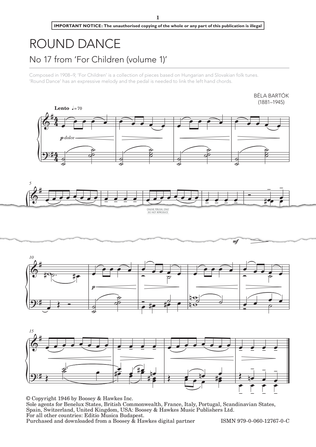 Round Dance, No. 17 from ‘For Children (volume 1)’ - Noten für Klavier Bela Bartok