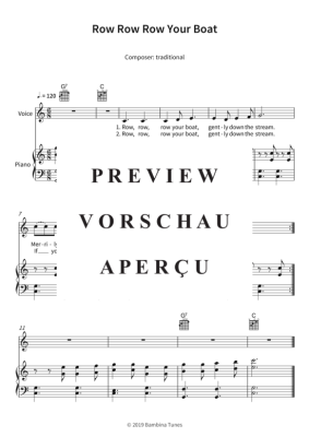 Row Row Row Your Boat - Noten für Gesang + Klavier, Gitarre traditional