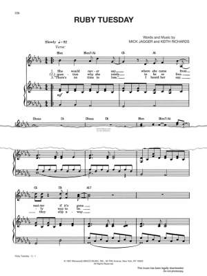 Ruby Tuesday - Noten für Gesang, Gitarre, Klavier The Rolling Stones