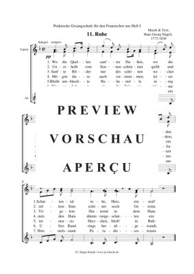 Ruhe - Noten für Frauenchor SSA Hans Georg Nägeli