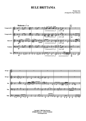 Rule Brittania - Noten fĂŒr BlechblĂ€serquintett Thomas Arne (arr. Simmons)