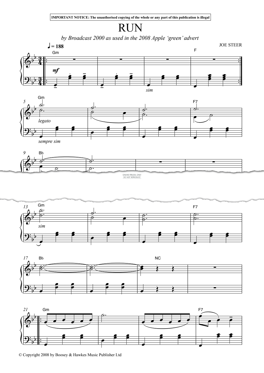 Run (as used in the 2008 Apple ‘green’ advert) - Noten für Klavier Broadcast 2000