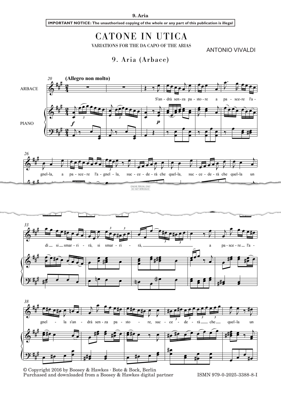 S’andrà senza pastore (from Catone in Utica) - Noten für Gesang, Klavier Antonio Vivaldi
