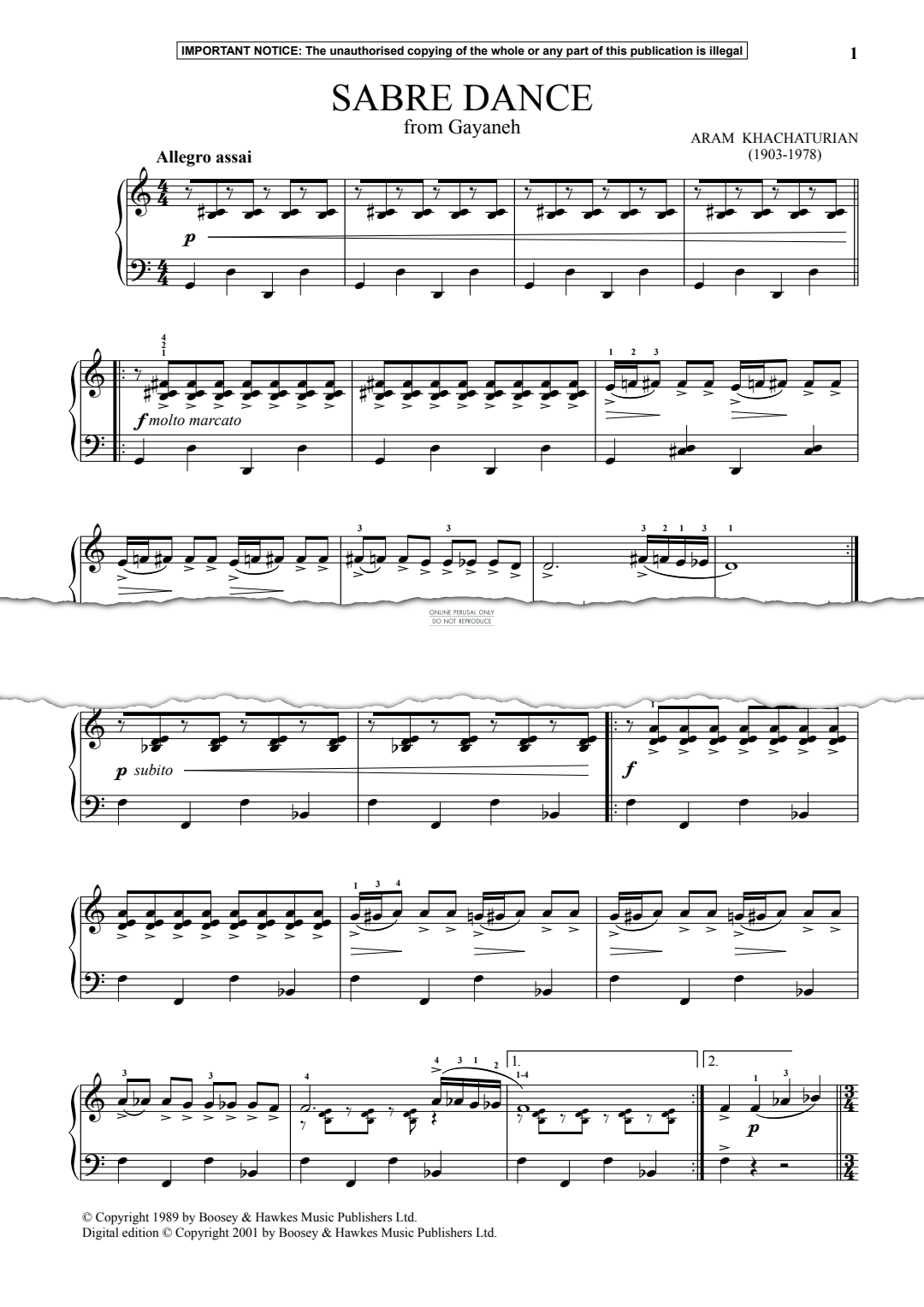 Sabre Dance from Gayaneh - Noten für Klavier Aram Khachaturian