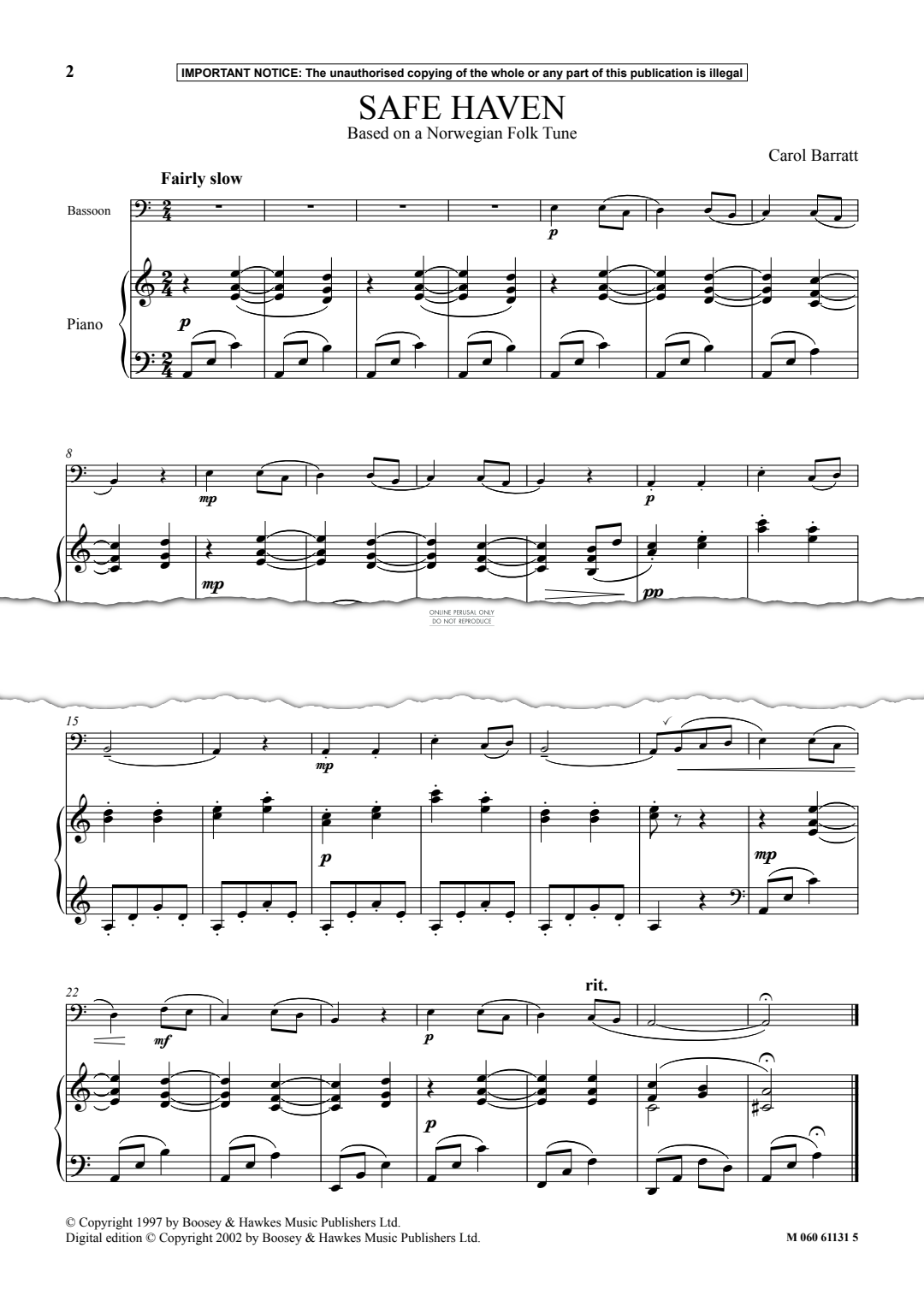 Safe Haven - Noten für Fagott Carol Barratt