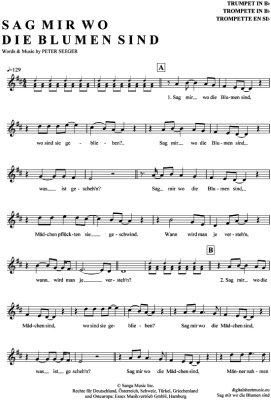 Sag mir wo die Blumen sind - Noten für Trompete in B Marlene Dietrich