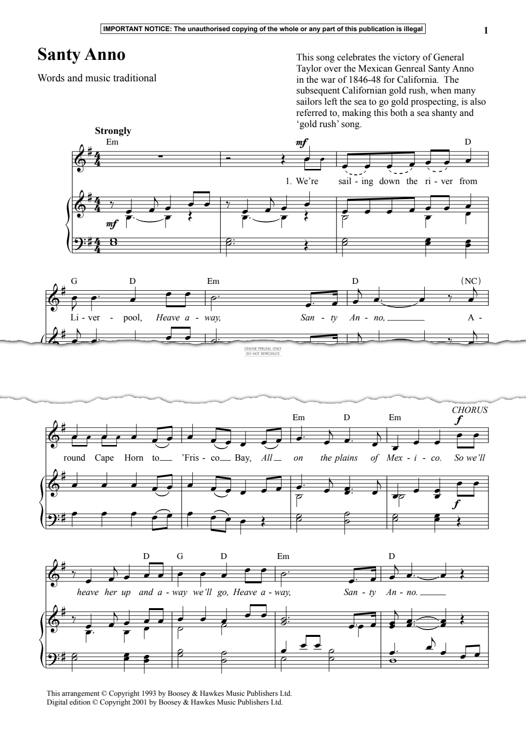 Santy Anno - Noten für Gesang, Klavier Traditional