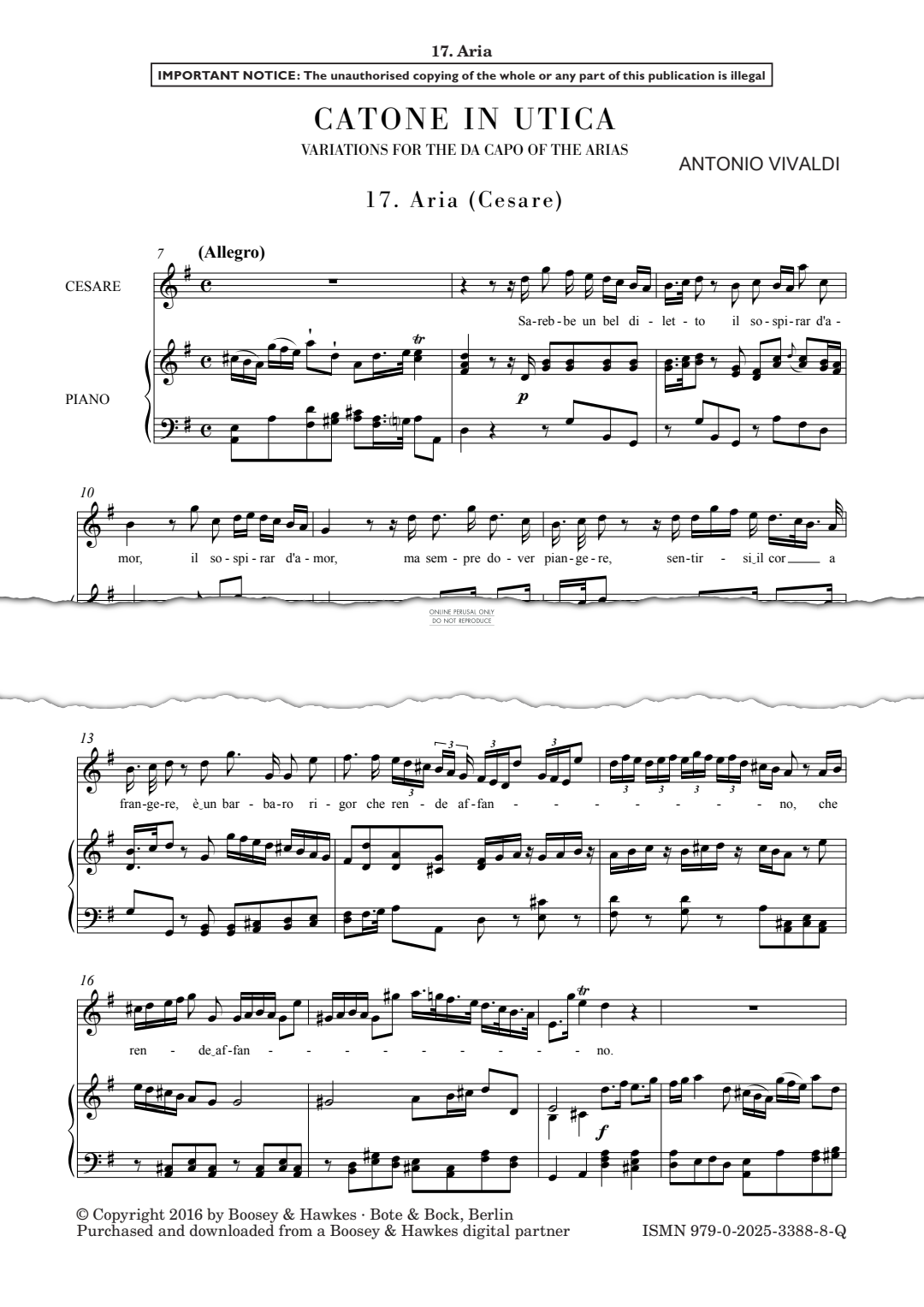 Sarebbe un bel diletto (from Catone in Utica) - Noten für Gesang, Klavier Antonio Vivaldi