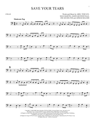 Save Your Tears - Noten für Violoncello The Weeknd