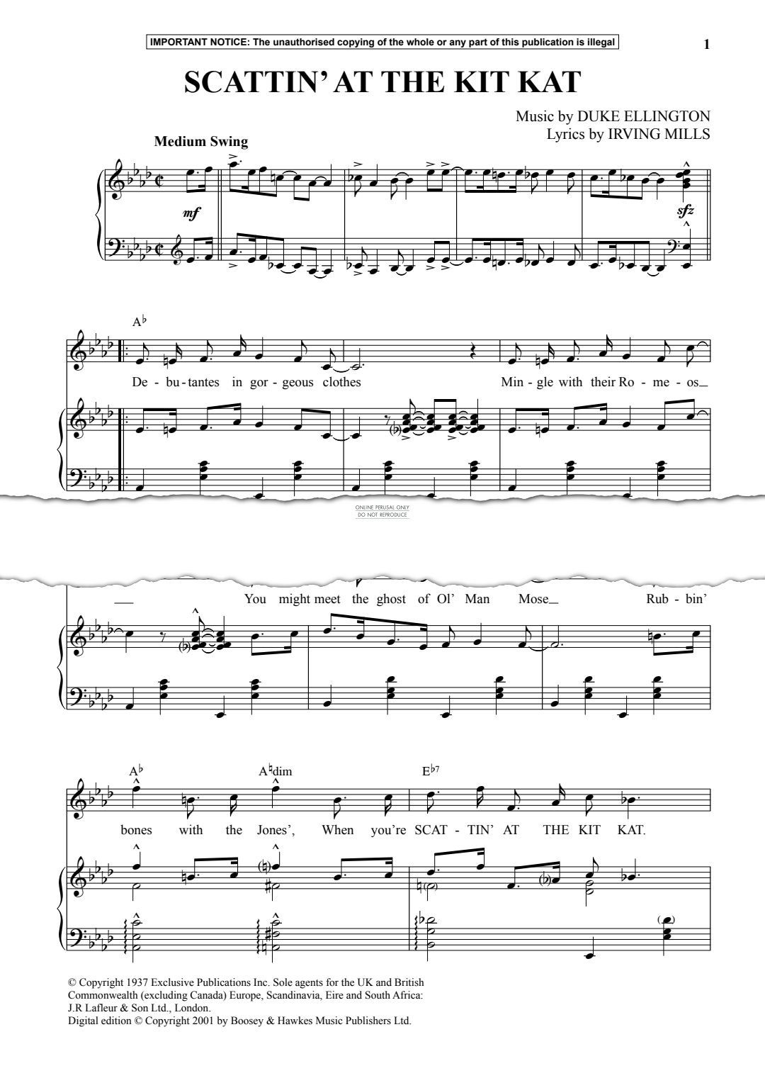 Scattin’ At The Kit Kat - Noten für Gesang, Klavier Duke Ellington