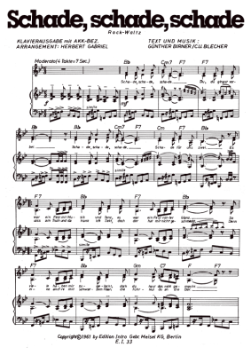 Schade, schade, schade - Noten für Klavier und Gesang Siw Malmkvist