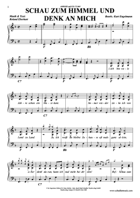 Schau zum Himmel und denk an mich - Noten für Klavier und Gesang Amigos