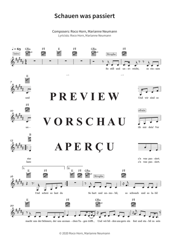 Dieses Notenheft enthält die Originalnoten zum Pop-Song "Schauen was passiert" von Berge. Mittlerer Schwierigkeitsgrad in gis-Moll.