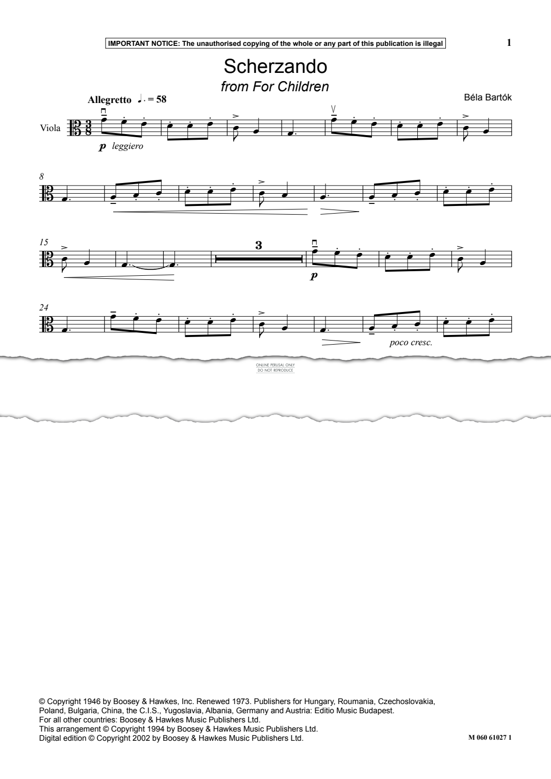 Scherzando from 'For Children' - Noten für Keyboard, Viola Bela Bartok