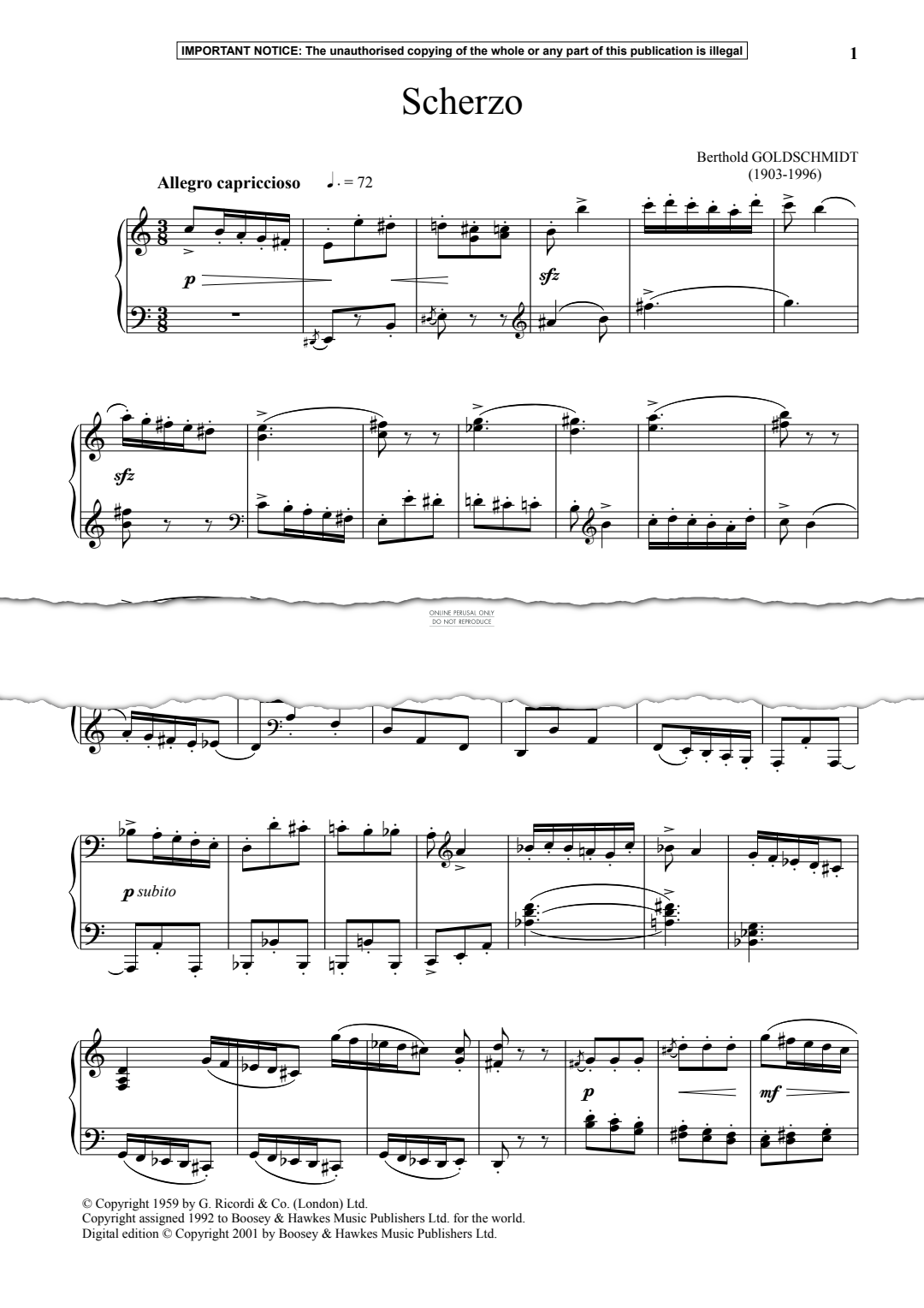 Scherzo - Noten für Klavier Berthold Goldschmidt