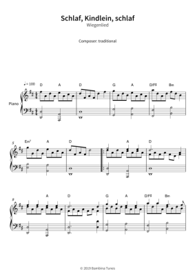 Schlaf, Kindlein, schlaf - Wiegenlied - Noten für Klavier Solo traditional